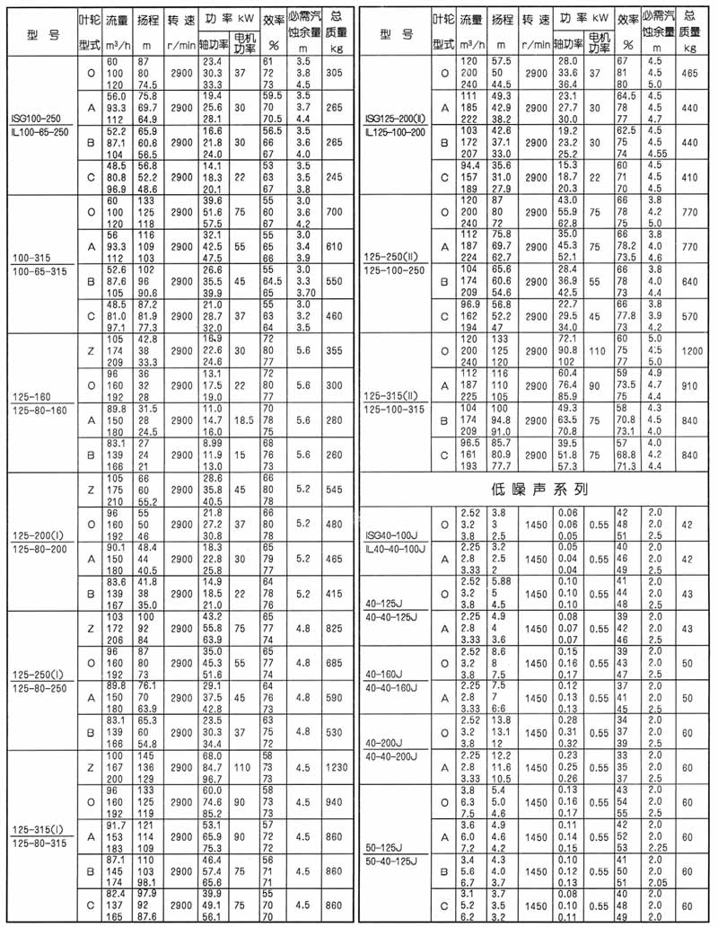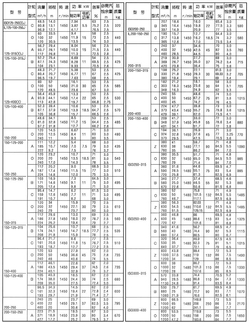 口徑125的ISG型泵,有兩種流量范圍,我們在型號后加(1)和(II)以示區(qū)別,如流量160m/h:ISG125-250(1);流量200m3/h:ISG125-250(1I)。