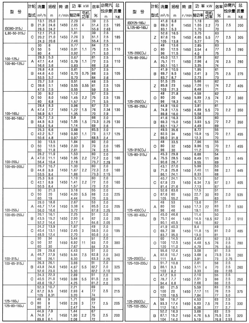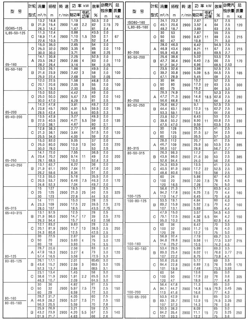 為了節(jié)能,部分泵選用了YDX型非標(biāo)準(zhǔn)功率的電機,在該泵的配用電機一欄,也同時注出了標(biāo)準(zhǔn)Y(YB)型電機的功率。