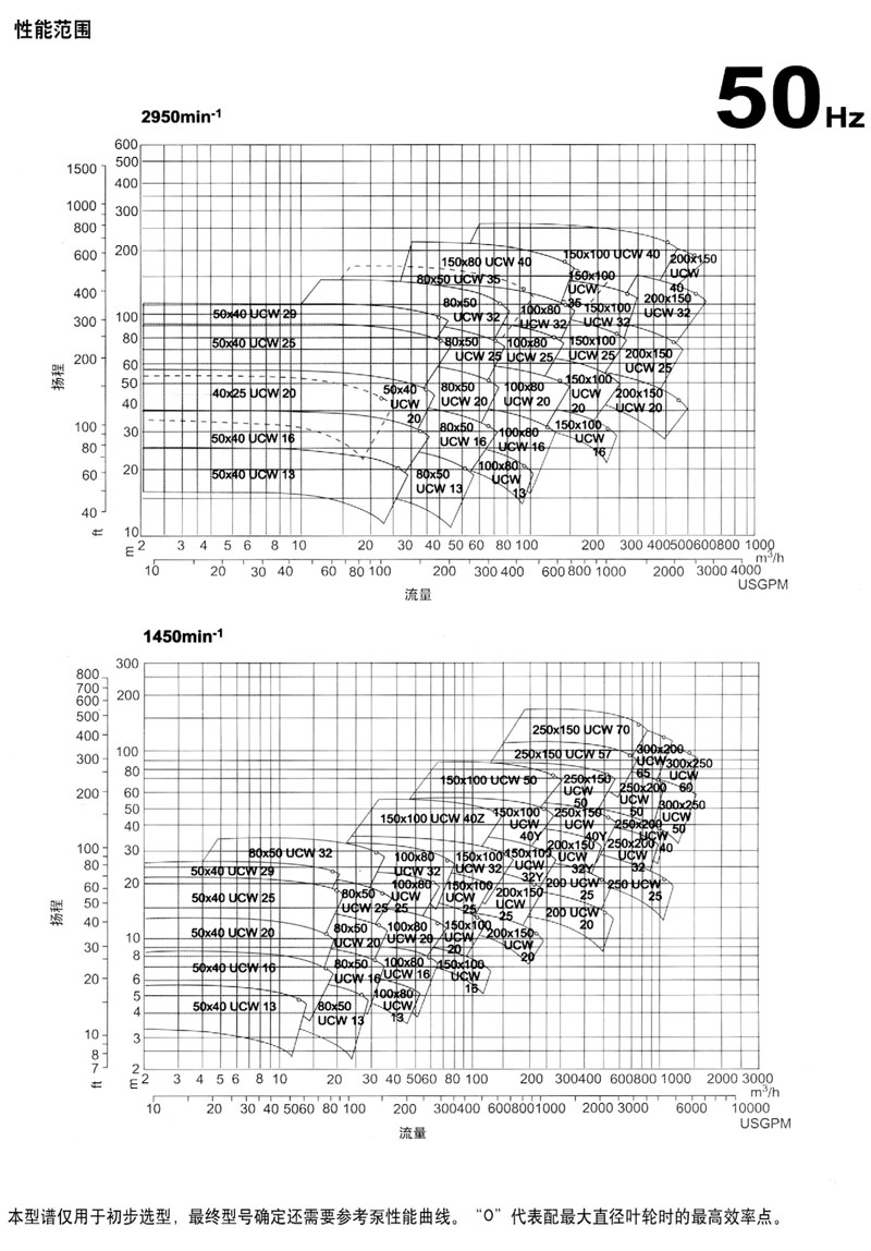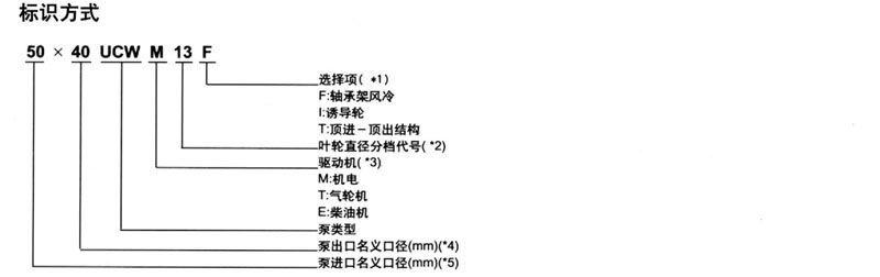 (*4)當(dāng)泵進(jìn)口和出口相時,進(jìn)出口尺寸代號可不必重復(fù)寫,例如,200 UCWM 20可代表200 X200 UCWM 20.